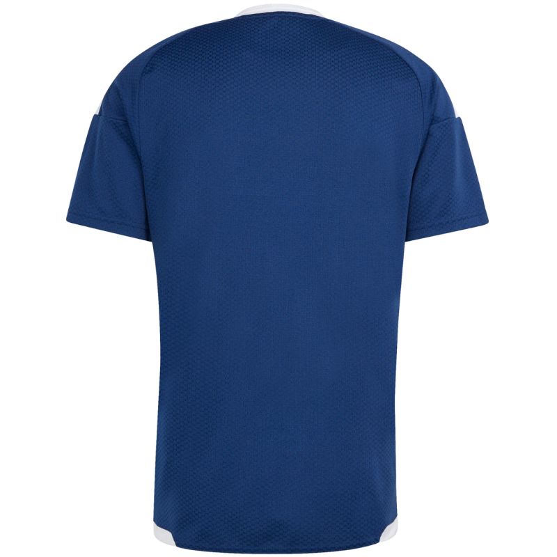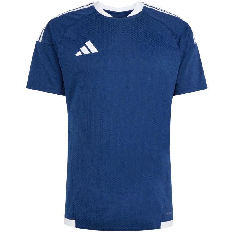 Men's adidas Tiro 26 Competition Match Jersey Navy Blue and White KA6168 This adidas men's jersey is perfect for football matches. Fitted fit. Crew neck with a subtle collar. Mesh panels. Climacool technology wicks and disperses sweat. Recycled fibers. Heat-transfer logo. Shoulder straps. Material: 100% recycled polyester