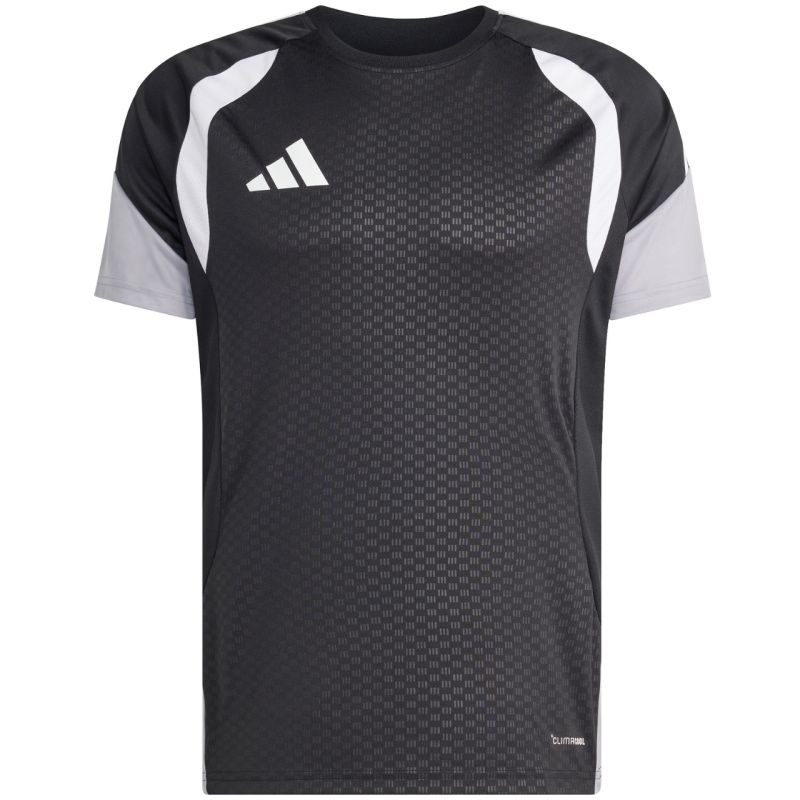 Men's adidas Tiro 26 Competition Training Jersey in Black, Gray, and White JX4254. This adidas men's jersey is perfect for training. It has a slim fit and a crew neckline. Cllimacool technology wicks and disperses sweat, keeping you cool and dry. Recycled fibers are used. Embossed pattern on the front panel. Material: 100% recycled polyester.
