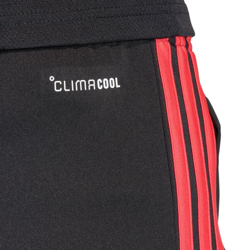adidas Tiro 26 League Training Shorts, Black and Red JY9716. These adidas men's shorts are perfect for the game. Part of the Tiro line, they feature a standard fit. They feature an elastic waistband with an internal drawcord. They feature Climacool technology and an interlock construction. They feature side stripes and a small embroidered logo. Material: 100% recycled polyester.