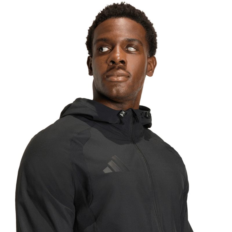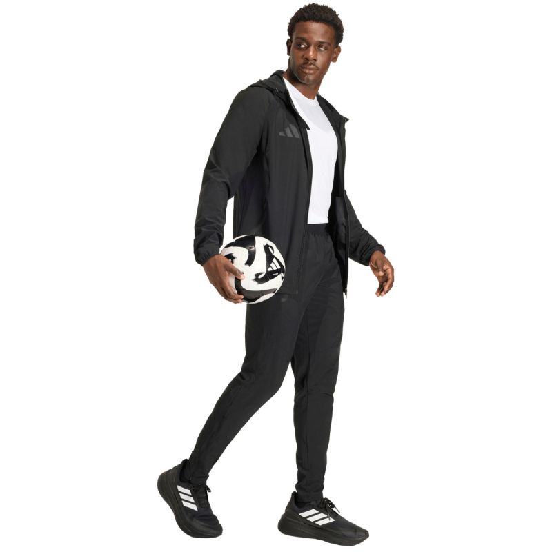 Men's adidas Tiro 26 Travel Windbreaker Jacket, Black JM5539. This men's windbreaker, inspired by adidas' football heritage, combines functionality with modern style. A simple, refined silhouette with a slim fit and ergonomic stitching allow the jacket to naturally drape and move with you. A full-length zipper and an adjustable hood. Lightweight construction made of smooth material. Subtle details with the adidas logo. This jacket is perfect for both training and everyday styling. Specifications: Material: 87% recycled polyester, 13% elastane Fitted fit Zipper Elastic cuffs Adjustable hood with toggles Zippered side pockets Elasticated hem