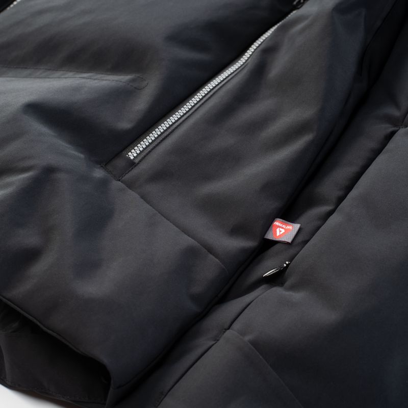 SKI JACKET SIZE: S-XL MATERIAL COMPOSITION: OUTER MATERIAL: 55% POLYESTER, 45% RECYCLED POLYESTER LINING: 100% POLYESTER FILLING: PRIMALOFT BLACK RISE, 100% POLYESTER, BODY: 100 g, HOOD: 40 g, SLEEVE: 80 g SPECIFICATIONS: – WATER RESISTANCE: 20,000 mm H₂O – BREATHABILITY: 20,000 g/m²/24h – ACTIVGUARD PRO TECHNOLOGY – RECCO SYSTEM – WIND PROTECTION – 2-LAYER LAMINATION – TAPED SEAMS – DWR COATING – WATERPROOF ZIPPER – SBS® ZIPPER – ZIPPER VENTILATION – NON-DETACHABLE SNOW GARTER – DETACHABLE HOOD – ADJUSTABLE HOOD – SKIPASS POCKET – INTERNAL POCKET – THUMB HOLES