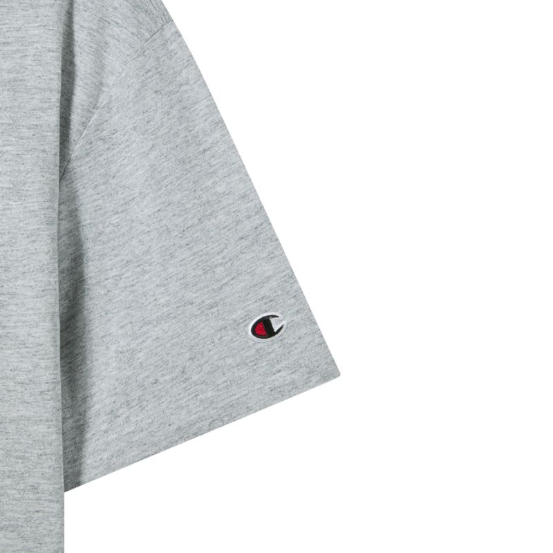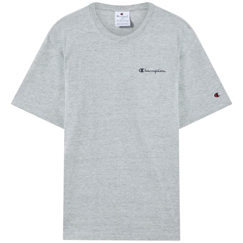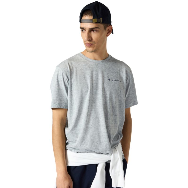 Champion SS Tee Gray 221798 EM021 This Champion men's tee is perfect for everyday wear. Regular fit. Small Champion logo on the chest and left sleeve. Ribbed crew neck. Soft fabric. Material: 100% cotton.