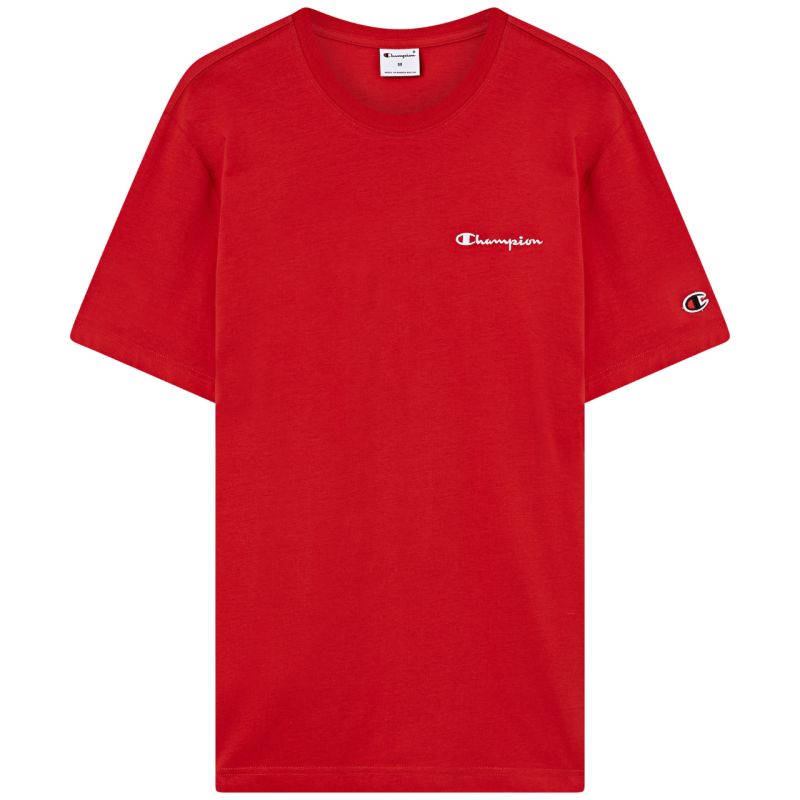 Champion SS Tee Red 221798 RS067 This Champion men's T-shirt is perfect for everyday wear. Regular fit. Small Champion logo on the chest and left sleeve. Ribbed crew neck. Soft fabric. Material: 100% cotton.