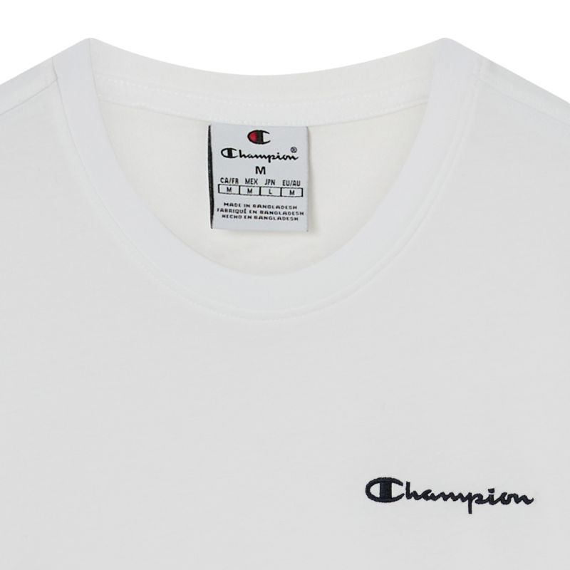 Champion SS Tee Men's White 221798 WW001 This Champion men's t-shirt is perfect for everyday wear. Standard fit. Small Champion logo on the chest and left sleeve. Ribbed crew neck. Soft fabric. Material: 100% cotton