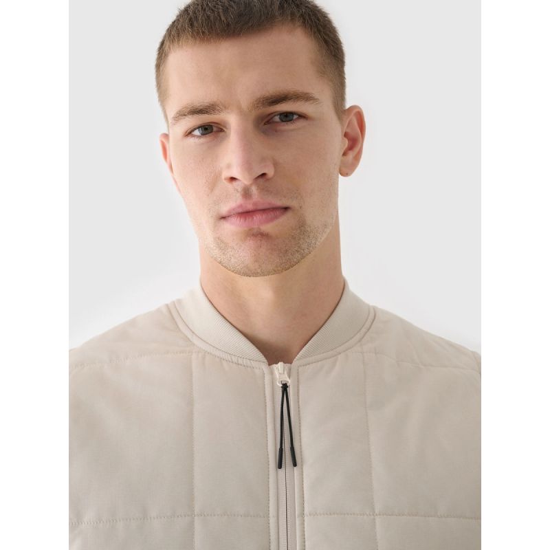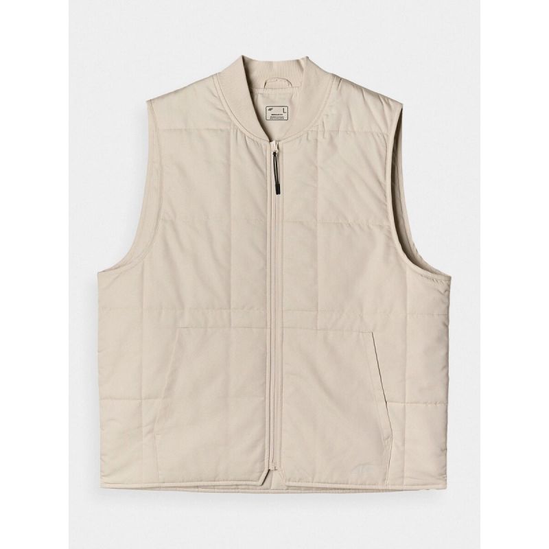 This men's down vest with a stand-up collar is a lightweight and functional insulating layer, ideal for both everyday wear and sporting activities on warmer days during the transitional period. Its low weight means it doesn't weigh you down while moving, while also effectively protecting you from the cold—especially as a layering piece worn under a membrane jacket. The vest is easy to pack and store, making it a practical choice for travel and everyday wear. The square quilting , creating a checkerboard effect, gives it a modern look and ensures even insulation distribution . The regular fit comfortably fits the body, while the standard hip-length ensures comfort. Lightweight polyester synthetic insulation provides adequate warmth, is soft, and easy to care for. Hydrophobic impregnation limits moisture absorption, allowing water to roll off the fabric. It's made of durable ripstop fabric , resistant to tearing and mechanical damage.