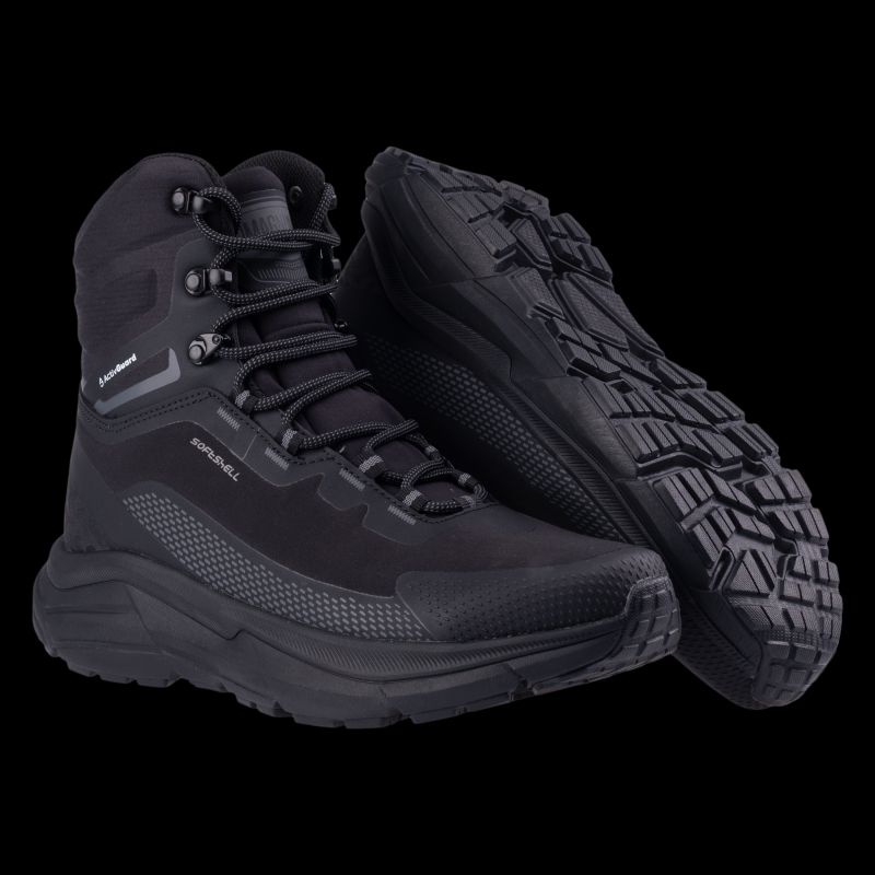 TACTICAL HIGH BOOTS SIZE: 41-46 MATERIAL COMPOSITION: UPPER: SOFTSHELL, TPU LINING: MESH INSOLE: MESH, HI-POLY FOAM SOLE: EVA PHYLON, RB RUBBER SPECIFICATION: - ACTIVGUARD TECHNOLOGY