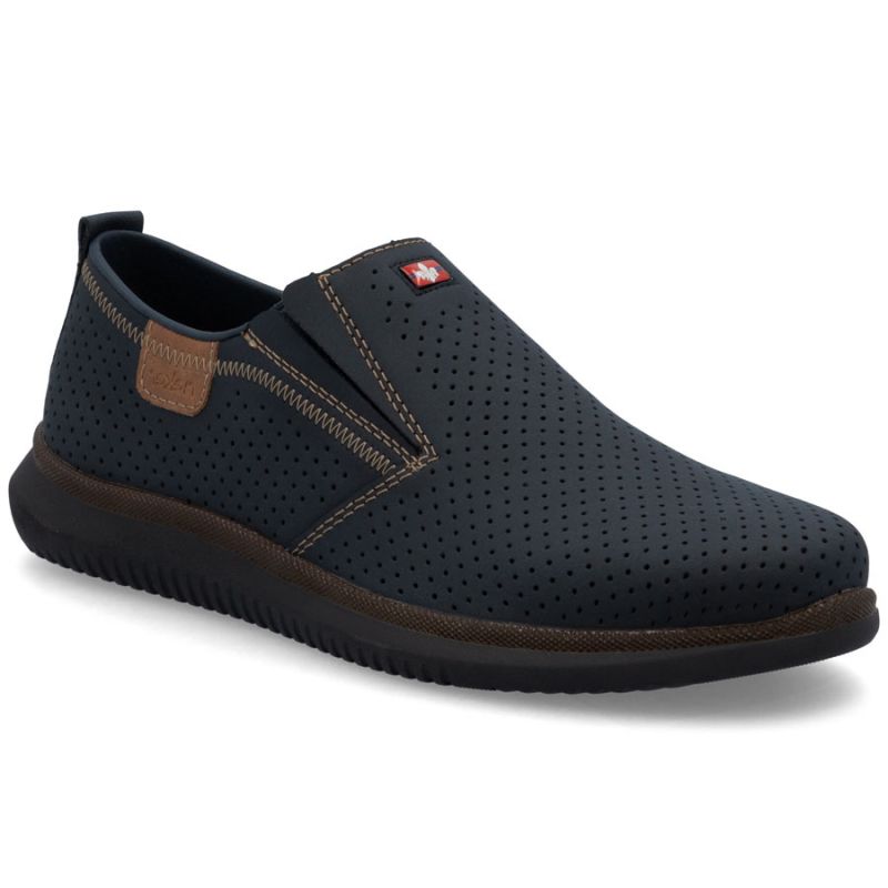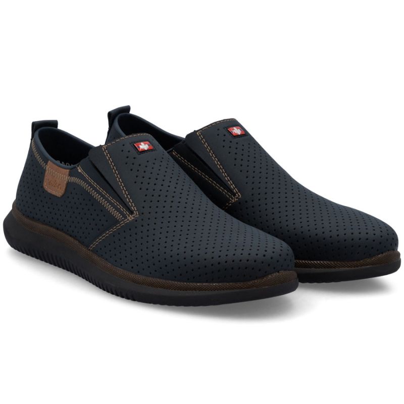 Men's navy blue slip-on shoes Rieker 10452-14