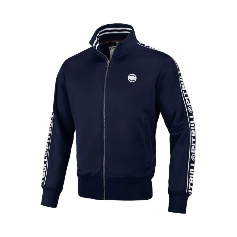 Men's Pit Bull West Coast Oldschool Tape Logo Terry Navy Bomber Sweatshirt