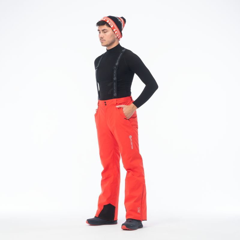SKI PANTS SIZE: M-XXXL MATERIAL COMPOSITION: OUTER MATERIAL: 100% RECYCLED POLYESTER LINING: 100% RECYCLED POLYESTER FILLING: 50% RECYCLED POLYESTER, 50% POLYESTER SPECIFICATIONS: – WATER RESISTANCE: 20,000 mm H₂O – BREATHABILITY: 20,000 g/m²/24h – ACTIVGUARD PRO TECHNOLOGY – RECCO SYSTEM – WIND PROTECTION – 2-LAYER LAMINATION – TAPED SEAMS – DWR COATING – WATERPROOF ZIPPERS – SBS® ZIPPER – ZIPPERS AT THE BOTTOM LEG PARTS – SNOW GARNISH IN THE LEG – INTERNAL POCKET CERTIFICATE: OEKO-TEX