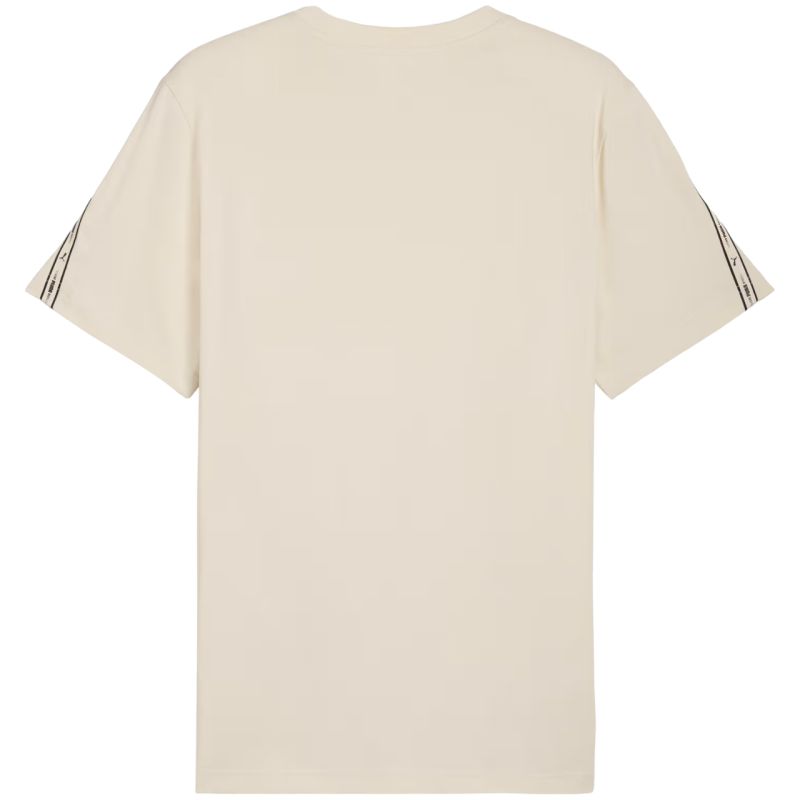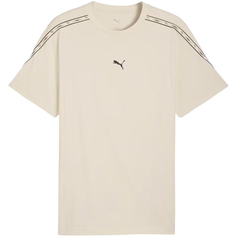 Puma Tape Tee Beige Men's T-Shirt 691693 87 This Puma men's t-shirt is perfect for everyday wear. Made of cotton, of which at least 20% is recycled. It features a standard fit, a crew neck, and short sleeves. Main fabric: 100% cotton. Ribbing: 80% cotton, 20% polyester.
