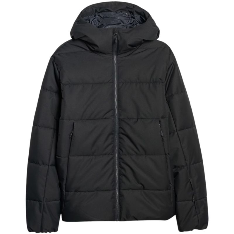 Men's ski jacket 4F M0788 deep black 4FWAW25TTJAM0788 20S The 4F men's ski jacket is functionality enclosed in a modern style. Technical data: NeoDry 5000/3000 membrane - protects against light rain and supports the breathability of the material Hydrophobic coating - limits moisture absorption and protects against precipitation Polyester insulation - provides warmth without additional weight, easy to care for Integrated powder skirt - keeps snow out, even during intense activity Hood with adjustment at the back - adapts to the head and protects against the wind 3 outer pockets with zippers 2 side pockets and ski pass - for the most necessary small items 2 inner pockets for goggles and accessories, one with a zipper Elastic cuffs - adjust to the wrists and retain heat Adjustable bottom of the jacket - a tunnel drawstring allows for a better fit Smooth lining - ensures comfort and easy putting on Regular fit - comfortable, adapts to the body
