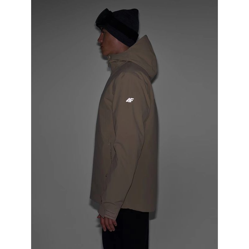 Men's hooded ski jacket , suitable for everyday use and low-impact sports. It features a slim fit, regular fit, and standard hip-length measurements. The 4F men's ski jacket features a NeoDry 5000/3000 membrane, meaning it's suitable for light rain or snow, while providing optimal moisture management during everyday activities. This synthetic down fill is more durable and easier to care for than natural down; it retains its insulating properties even when wet for extended periods, dries significantly faster, and is moisture-resistant. Furthermore, it requires minimal washing and dry cleaning.