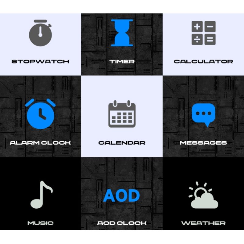 - NEW! - ALWAYS ON DISPLAY!!! (This function consists in constantly displaying the clock on the smartwatch screen in standby mode, 2 modes - analog or digital clock, the ability to turn the function on/off)