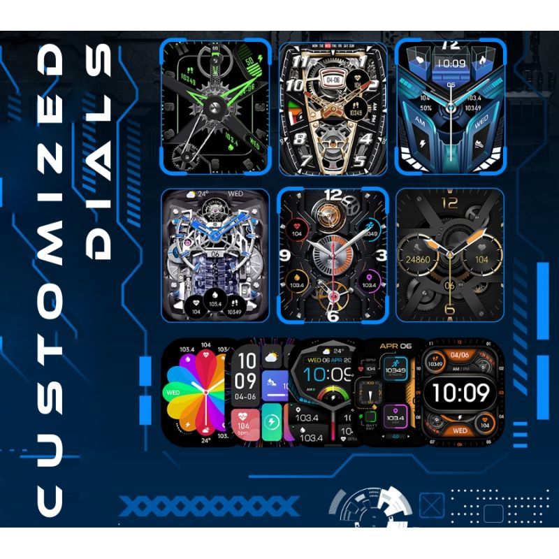 - Watch face: 6 themes to choose from + additional watch faces in the app! + your own watch faces!