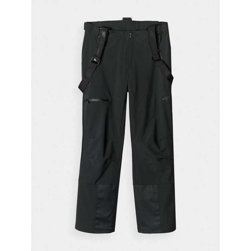 Prepare for intense skiing in all conditions. These men's softshell ski pants with a NeoDry 10,000/8,000 membrane effectively protect against moderate rain and snow while wicking moisture away. Hydrophobic impregnation limits water absorption, and a zippered thigh ventilation system allows you to regulate airflow during intense activity. Pre-shaped knees and a regular fit ensure freedom of movement, while snow gaiters , side leg zippers , and removable suspenders enhance comfort on the slopes. Reflective elements enhance safety in inclement weather.