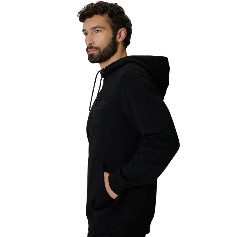 Men's 4F M2548 Sweatshirt Deep Black 4FWMM00TSWSM2548 20S This men's 4F sweatshirt will allow you to create comfortable styles perfect for everyday wear. Technical data: · Main material: 80% cotton, 20% polyester · Additional material: 100% cotton · Additional material 2: 95% cotton, 5% elastane · Regular fit comfortably adapts to the figure · Standard cut reaching to the hips · Made mostly of cotton, making it soft, durable, and pleasant to the touch · The addition of polyester makes the material durable and resistant to wear for many seasons · Integrated hood with adjustment · Ribbed cuffs · "4F" print on the front · Kangaroo pocket on the front · Pulls on over the head · Ribbed hem