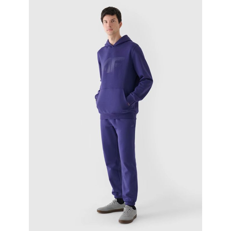 Made of high-quality knit fabric (80% cotton, 20% polyester), this sweatshirt is soft, durable, and resistant to everyday wear. Its brushed interior provides extra warmth, making it perfect for even colder days. A built-in hood, a "4F" print on the front, and a practical kangaroo pocket add a sporty touch.