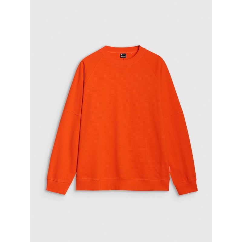 Raglan sleeves allow for freedom of movement, while ribbed cuffs and hem ensure a perfect fit. The sweatshirt pulls on over the head and is unlined, enhancing its lightweight and breathable feel.