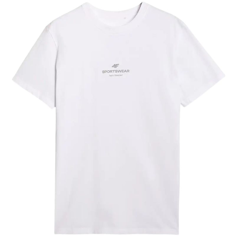 4F M2961 Men's T-Shirt, White 4FWAW25TTSHM2961 10S This 4F men's T-shirt with a subtle logo is perfect for everyday wear. Technical data: Material: 100% cotton Weight: 180 gsm - optimal material thickness for comfort and durability Regular cut comfortably fits the body Made of 100% cotton - a material with high softness and durability Solid colors match many styles Soft-touch single jersey fabric with a smooth surface - pleasant to the skin Round neckline with slight ribbed detailing - elastic finish for increased comfort Print on the front - an accent emphasizing the brand's sporty character