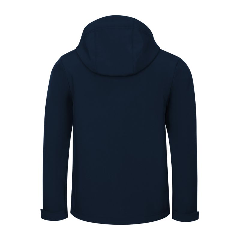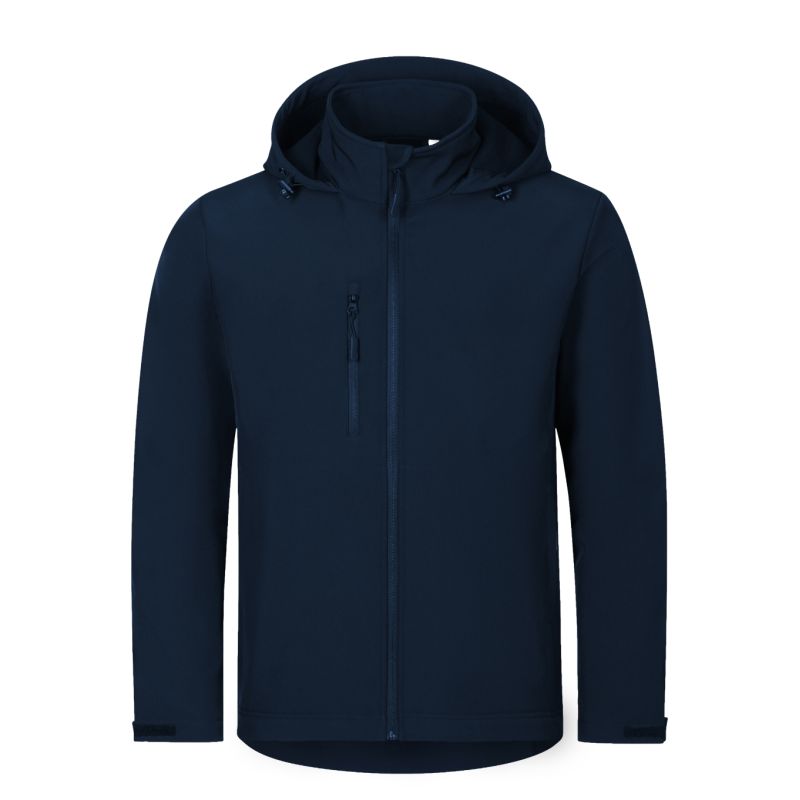 Softshell: 96% polyester, 4% elastane, 100D, 4-Way Stretch, water-repellent finish, inner side: 100% polyester - microfleece, anti-pilling finish without label - ready for rebranding, 2-layer softshell, straight cut with side panels, full-length reverse-zip front zipper with chin guard, elastic hood with drawstring and drawstring at bottom, back hem label in neutral size, adjustable sleeve hems with Velcro, pockets with reverse-spiral zipper, chest pocket, slightly extended at the back, inner fleece with anti-pilling finish