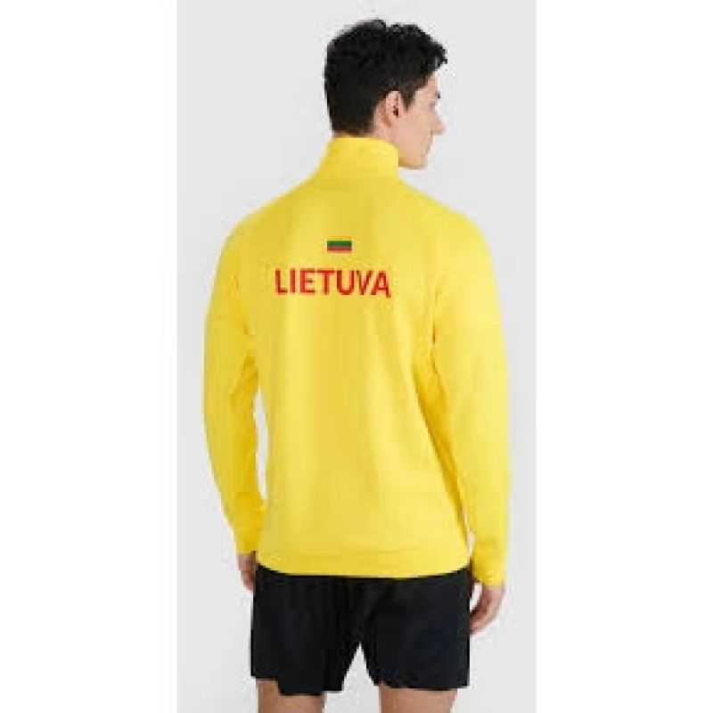 A stand-up collar adds coverage, while the one-way main zipper makes it easy to put on and take off. The sweatshirt features two open side pockets and raglan sleeves for unrestricted movement. A distinctive accent is the sublimated print : the Lithuanian coat of arms on the front, and the "Lietuva" inscription and the country's flag on the back.