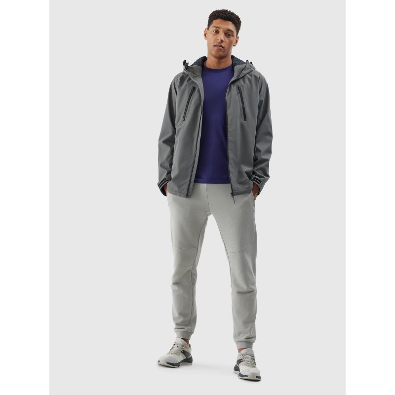 This men's hooded transitional jacket is perfect for casual, everyday styling, and thanks to its features and technologies, it can also be worn during sports activities. It will provide thermal comfort on warmer days. Made of rip-stop synthetic material, it is durable, tear-resistant, and easy to care for. It features a regular fit that comfortably fits the body and a standard length that reaches to the hips.