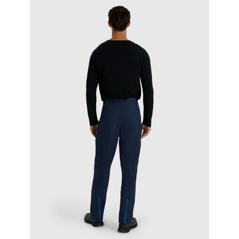 These men's trekking trousers are designed for hikes that prioritize comfort, warmth, and protection in variable conditions. Water-repellent impregnation protects the fabric from moisture absorption, while lightweight polyester insulation provides thermal comfort without feeling heavy. A soft tricot lining ensures a comfortable feel against the skin, while ventilation on the outer thighs allows for temperature regulation during exertion. The regular fit and mid-rise waist ensure freedom of movement, while zippers at the back of the legs make it easy to fit the trousers over trekking boots. Two zippered pockets provide secure storage for small items, and reflective elements enhance visibility after dark. This is a proven choice for mountain trails where reliability and comfort are key.