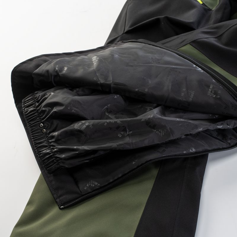 SKI PANTS SIZE: S-XL MATERIAL COMPOSITION: OUTER MATERIAL: 100% POLYESTER LINING: 100% POLYESTER FILLING: PRIMALOFT BLACK RISE 80 g, 100% POLYESTER SPECIFICATIONS: – WATER RESISTANCE: 20,000 mm H₂O – BREATHABILITY: 20,000 g/m²/24h – WINDPROOF – ACTIVGUARD PRO TECHNOLOGY – RECCO SYSTEM – 2-LAYER LAMINATION – TAPED SEAMS – DWR COATING – WATERPROOF ZIPPER – SBS® ZIPPER – ZIPPER VENTILATION – ZIPPERS AT THE BOTTOM PART TROUSERS - SNOW GUARDS IN THE TROUSERS - INTERNAL POCKET