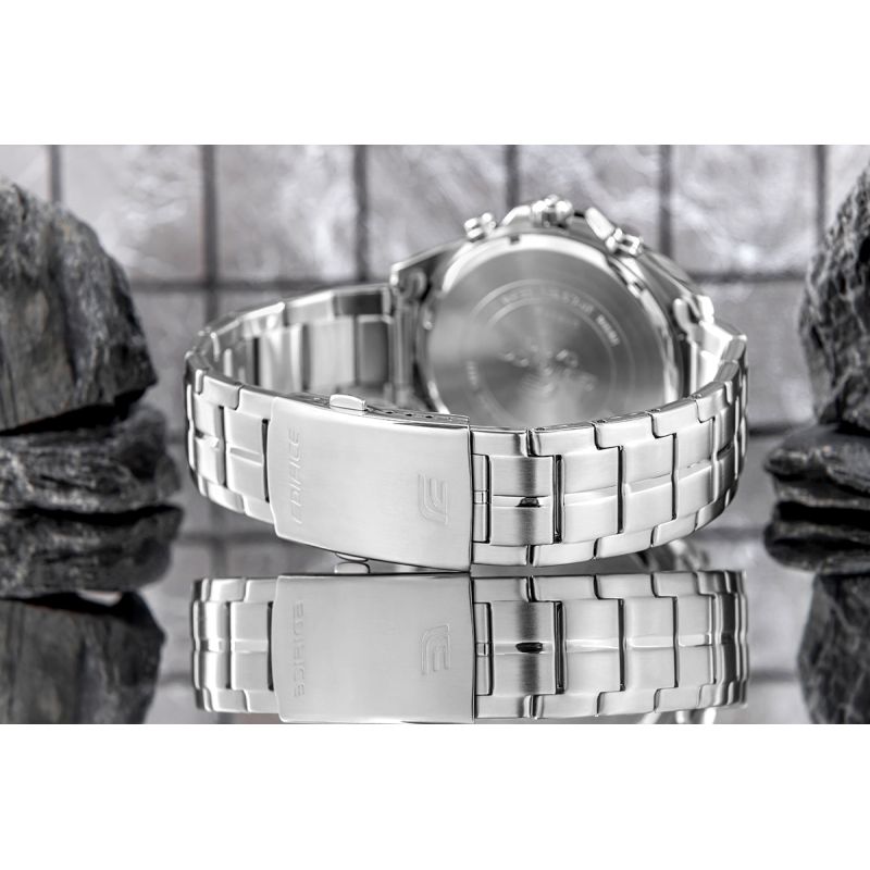 Some models feature a screw-down caseback, ensuring maximum security and convenience—protecting the precision mechanisms and enabling easy battery replacement. CASIO EDIFICE watches are water-resistant to 10 bar, with some models even up to 20 bar, making them suitable for both everyday wear and demanding conditions.