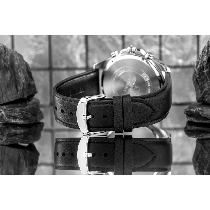 The CASIO EDIFICE proves its versatility. Whether you choose the classic model with a steel bracelet, the sporty variant with an elastic strap, or the elegant version with a genuine leather strap – every EDIFICE on your wrist combines sporty style with a sophisticated look.