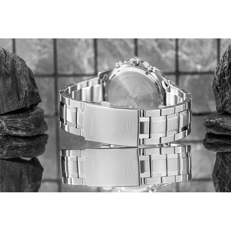 Some models feature a screw-down caseback, ensuring maximum security and convenience—protecting the precision mechanisms and enabling easy battery replacement. CASIO EDIFICE watches are water-resistant to 10 bar, with some models even up to 20 bar, making them suitable for both everyday wear and demanding conditions.