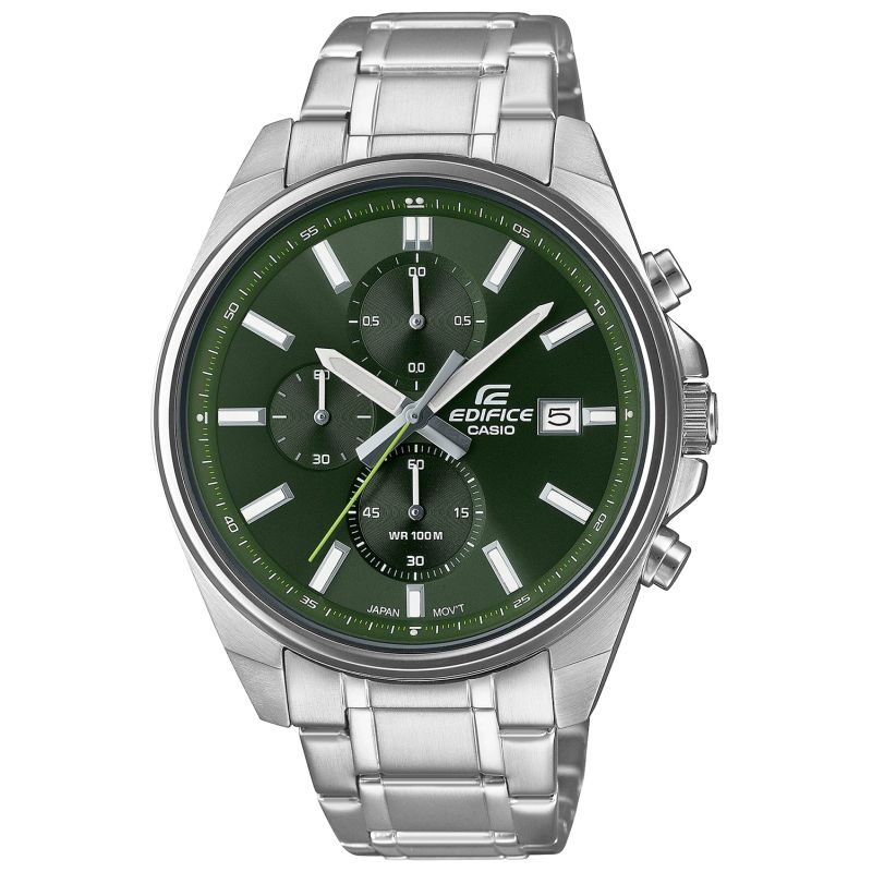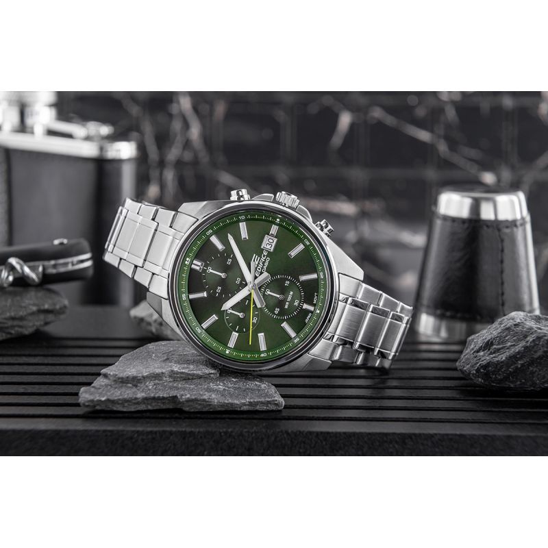 The CASIO EFV-610D-3CVUEF Men's Watch is equipped with a date display and chronographs: stopwatch; Neobrite - Neobrite coating allows you to comfortably read the time even in the darkest conditions.