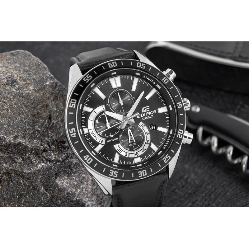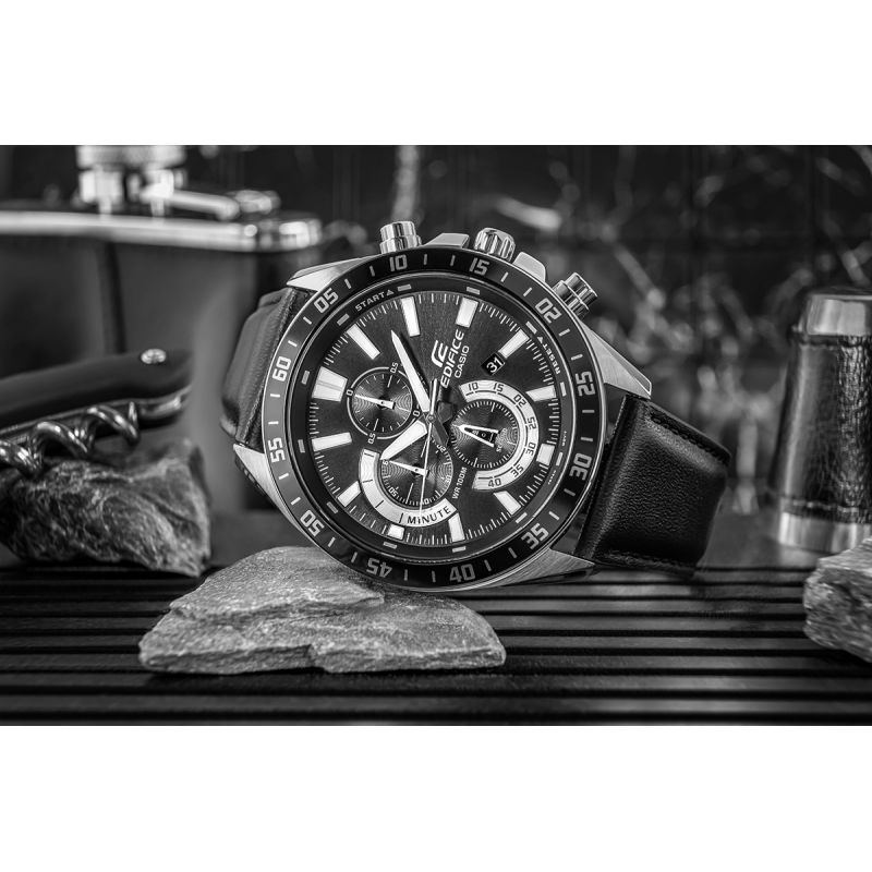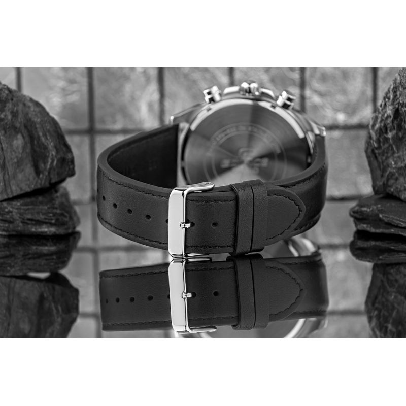 The CASIO EDIFICE proves its versatility. Whether you choose the classic model with a steel bracelet, the sporty variant with an elastic strap, or the elegant version with a genuine leather strap – every EDIFICE on your wrist combines sporty style with a sophisticated look.