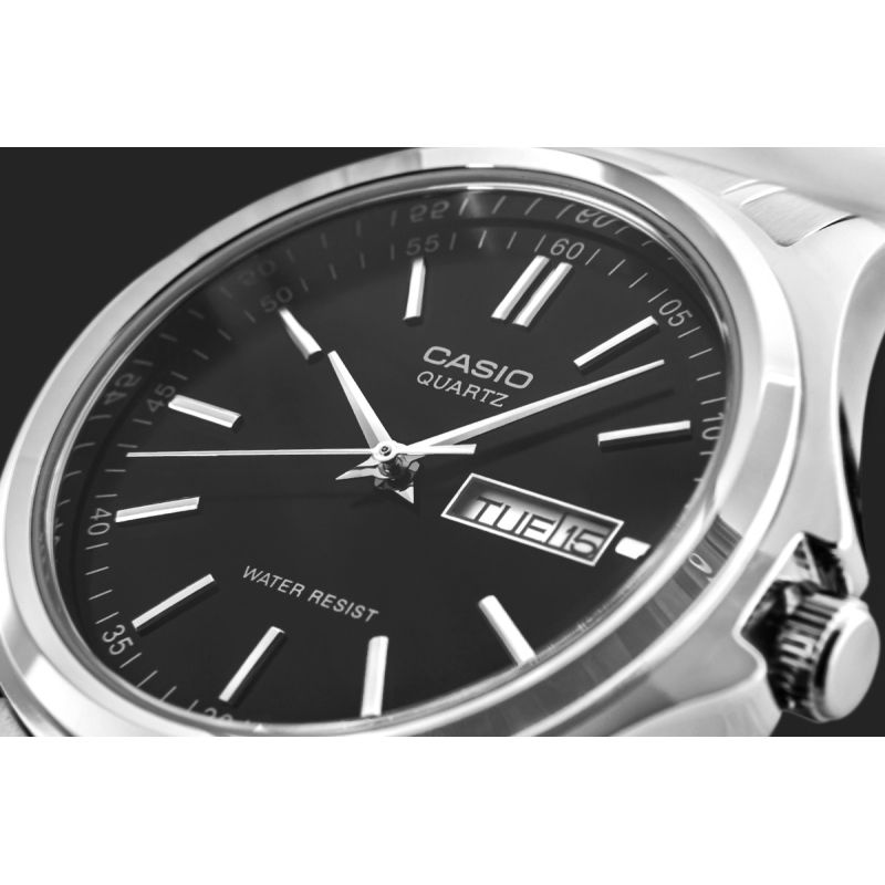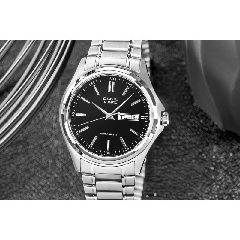 If you're looking for a timepiece that emphasizes your style without unnecessary frills, while remaining reliable and versatile , this Casio model is a perfect choice. Its black dial with delicate silver indices highlights the timeless design while ensuring readability in all conditions . Slim hands and a subtly placed date and day display are practical yet understated details that make it an ideal choice for everyday wear and more formal occasions . The steel bracelet adds a masculine touch while guaranteeing comfort and durability, making it a long-lasting investment.