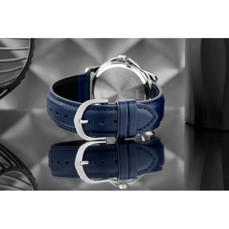 The minute scale on the bezel ring gives the watch a sporty edge and enhances its functionality – perfect for quickly measuring time during everyday tasks, workouts, or breaks between duties. Additionally, the hands and indices are coated with a fluorescent (luminescent) coating , which glows in the dark after exposure to daylight or artificial light.