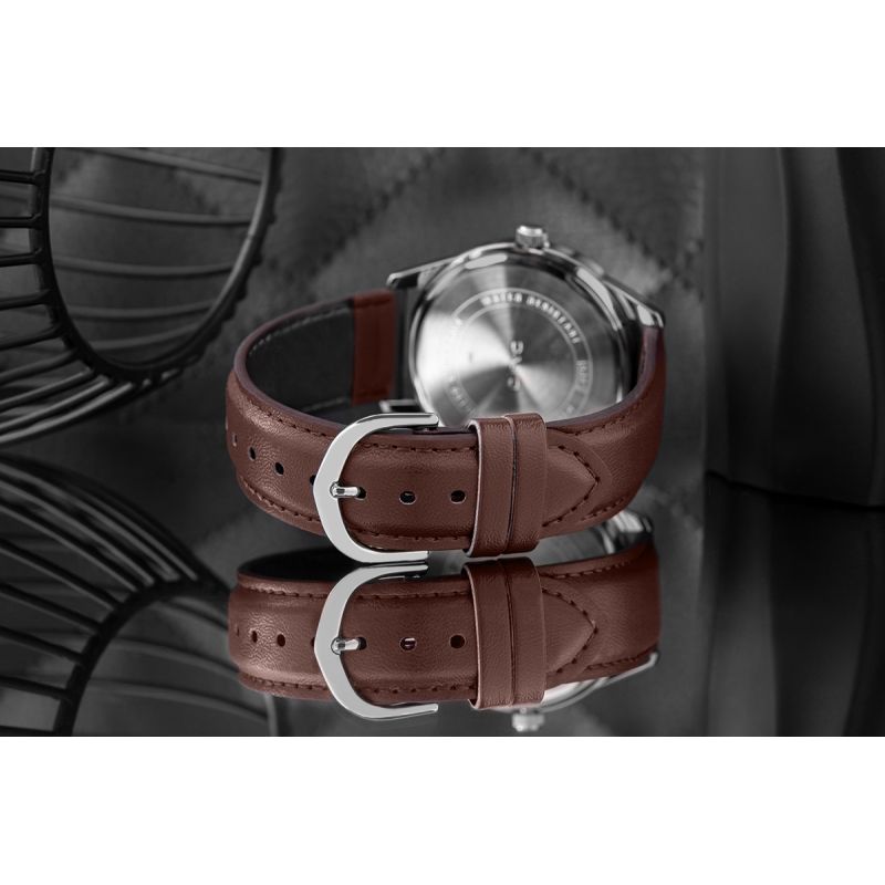 Crafted from high-quality, genuine leather, it impresses with its softness and precision from the very first touch. It's not only a stylish piece but also a reliable everyday companion – it fits perfectly on the wrist, ensuring all-day comfort. This leather develops even more character over time, aging beautifully and giving the watch a unique look. Thanks to the natural properties of the leather, the strap "breathes," making wearing a leather watch exceptionally pleasant and comfortable.