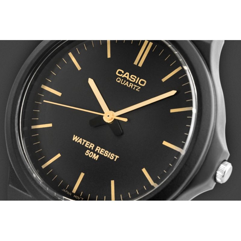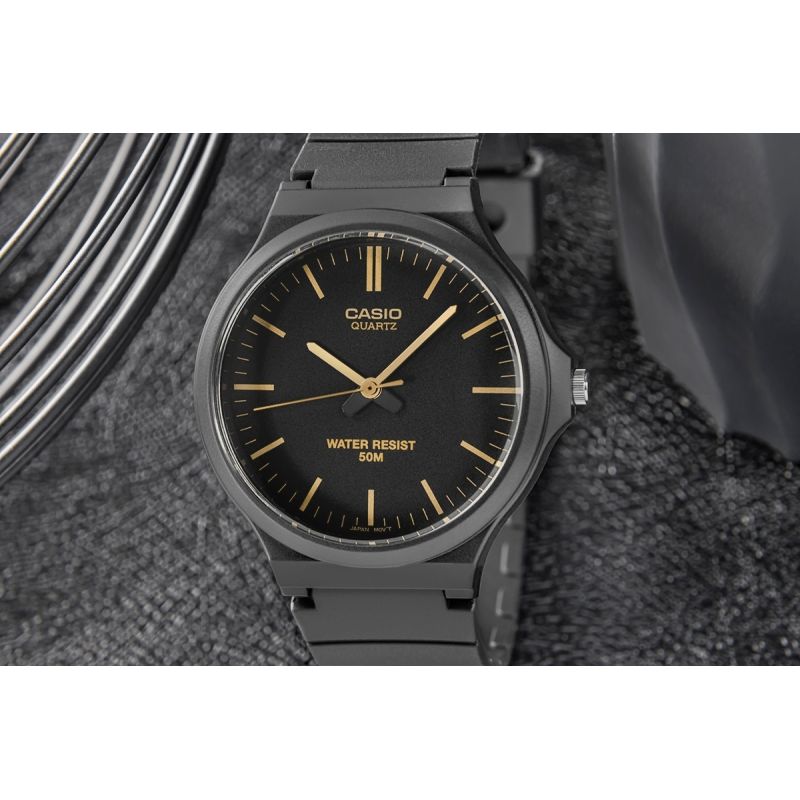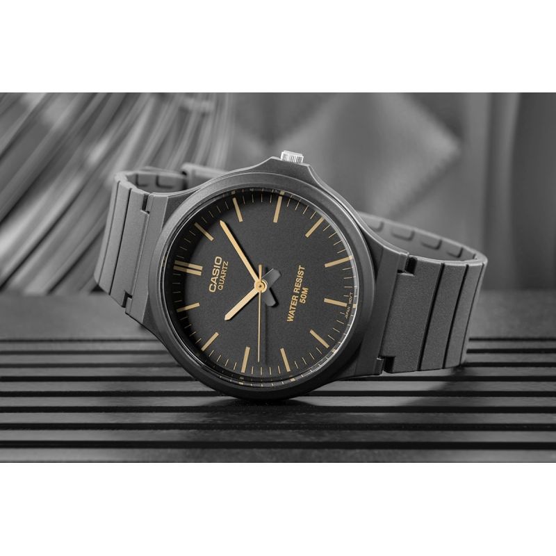 The CASIO MW-240 men's watch combines minimalism, functionality, and comfort in a masculine design. The watch's lightweight construction (just 35g!) makes it almost unnoticeable on the wrist. The flexible, matte resin strap adapts to your movements, is wear-resistant, and ready for any situation – from meetings to training. Large, contrasting indices and hands allow you to check the time at a glance. Durable Resin Glass ensures resistance to everyday wear, while 5-bar water resistance ensures that splashes, rain, or a quick shower won't be a problem.