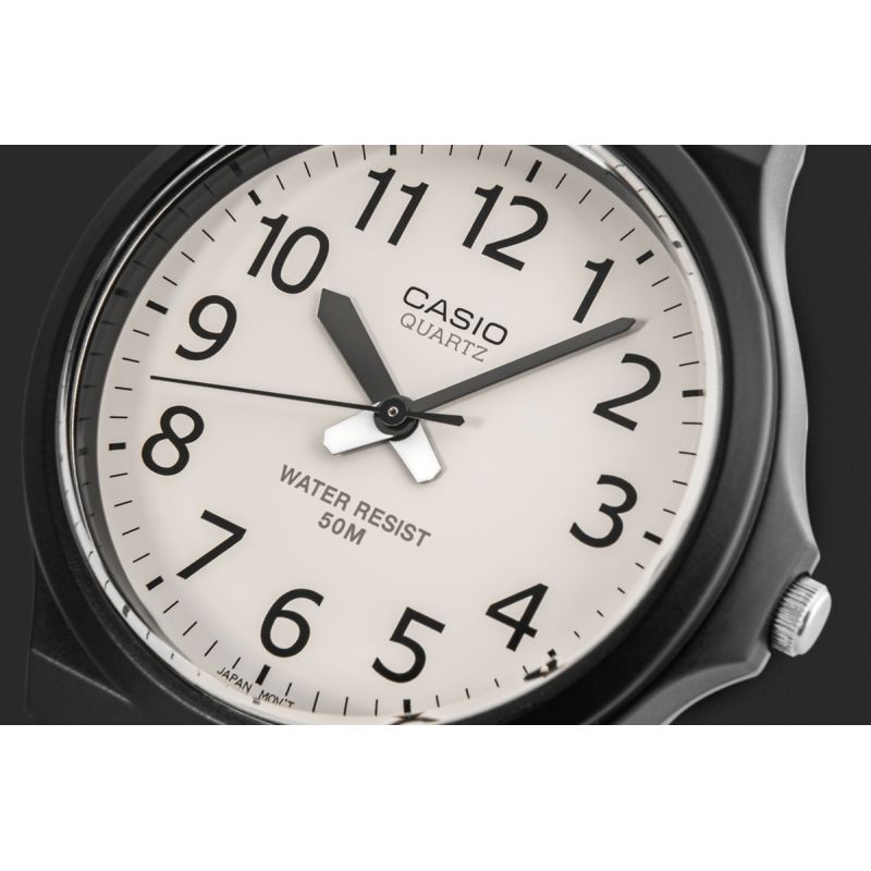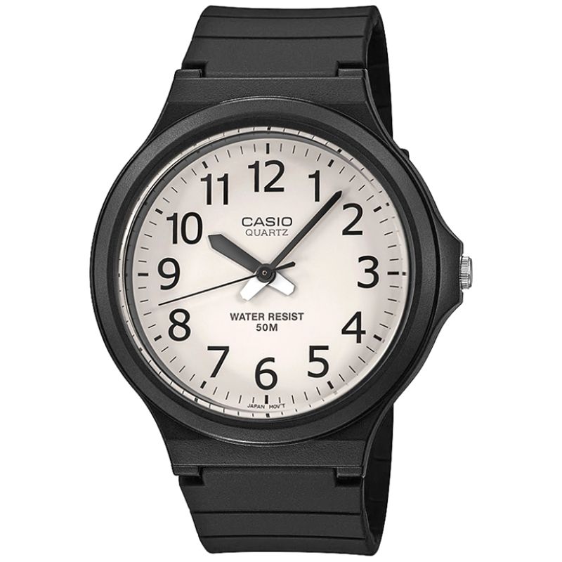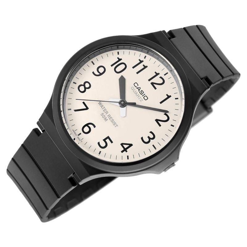 The CASIO MW-240 men's watch combines minimalism, functionality, and comfort in a masculine design. The watch's lightweight construction (just 35g!) makes it almost unnoticeable on the wrist. The flexible, matte resin strap adapts to your movements, is wear-resistant, and ready for any situation – from meetings to training. Large, contrasting numerals and hands allow you to check the time at a glance. Durable Resin Glass ensures resistance to everyday wear, while 5-bar water resistance ensures that splashes, rain, or a quick shower won't be a problem.