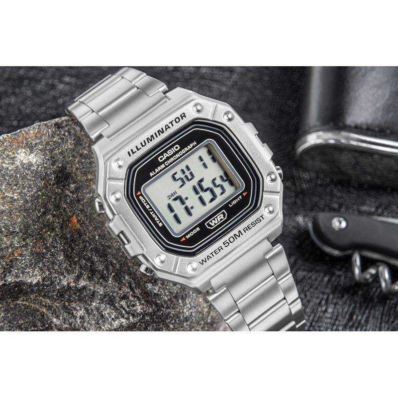 The Casio W-218HD-1AVDF embodies the essence of classic Casio style in a modern, sporty design: a bold, rectangular LCD display in a sturdy case, easy to read at a glance, with subtle accents that add freshness and versatility. This watch is built for the pace of everyday life: 50m water resistance , LED backlight for reliable reading after dark, a 7-year battery for long-lasting reliability, and a practical feature set – a 1/100s stopwatch (up to 60 minutes) , a daily alarm with hourly time signal , an automatic calendar , and a 12/24-hour format . Lightweight and comfortable, with a resin glass and a durable bracelet, it's perfect for both training and everyday wear. If you're looking for uncompromising simplicity combined with legendary Casio durability, this watch will be a perfect choice.