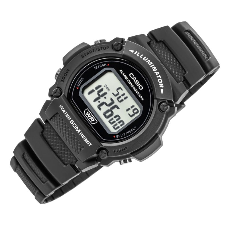 The Casio W-219H-1AVDF men's watch is a robust and reliable model with a sporty character, perfect for everyday wear. Equipped with a clear digital display, it provides easy reading of the time and functions, and its lightweight plastic casing makes it very comfortable to wear. Offering basic yet useful functions such as a stopwatch, alarm, hourly time signal, and backlight, the watch is perfect for everyday use, even after dark. It's water-resistant to 50 meters, sufficient for washing hands or contact with water in the rain. Its simple, sporty design complements both everyday and more casual outfits. This model is valued for its durability, reliability, and excellent value for money. This watch is for men who value practicality, classic style, and functionality without unnecessary frills—simply a watch that always works and looks good.