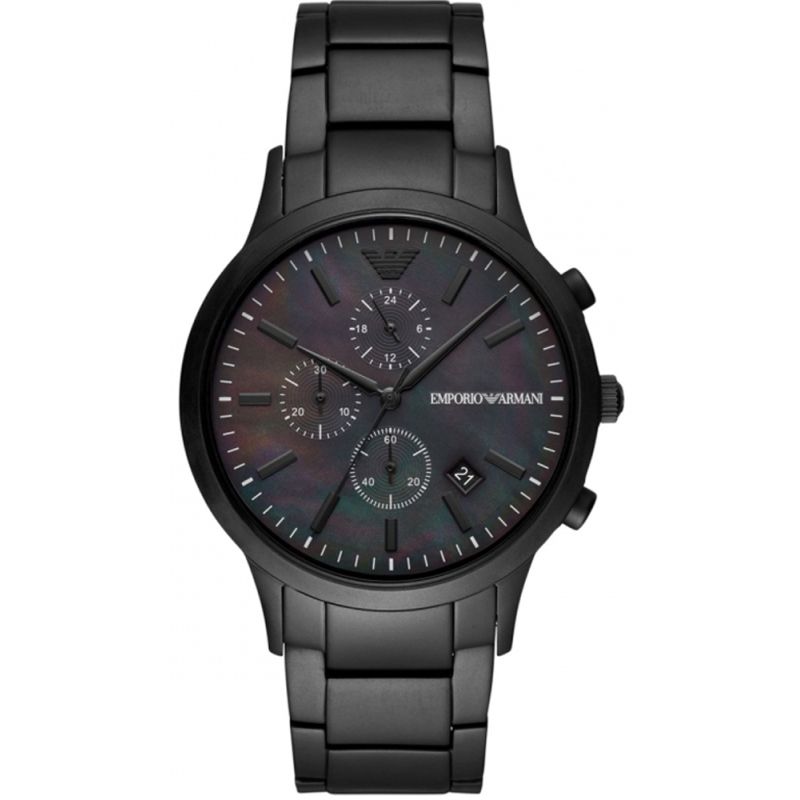 The Emporio Armani Renato AR11275 men's watch is an elegant timepiece that combines classic style with the modern design typical of the Armani brand. The approximately 43 mm diameter case is crafted from black stainless steel, giving the watch a durable and timeless look. The matte black stainless steel bracelet complements the black pearl dial, which features minimalist hour markers and the Emporio Armani logo at 12 o'clock. The watch is equipped with a precise quartz movement for accurate timekeeping. Mineral crystal protects the dial from scratches, and 5 ATM water resistance ensures safe wear during everyday activities. The Emporio Armani Renato AR11275 is an excellent choice for men who value classic elegance and quality craftsmanship, perfect for both suits and casual outfits.