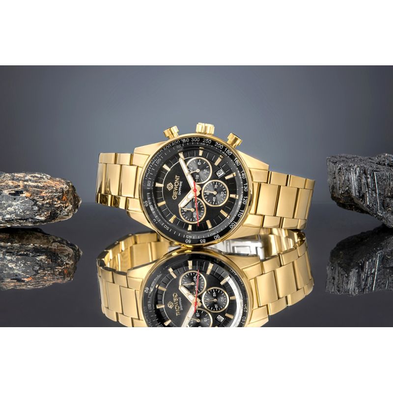 Men's Watch Giewont Chronograph Sapphire Gold Black GW9140-B4