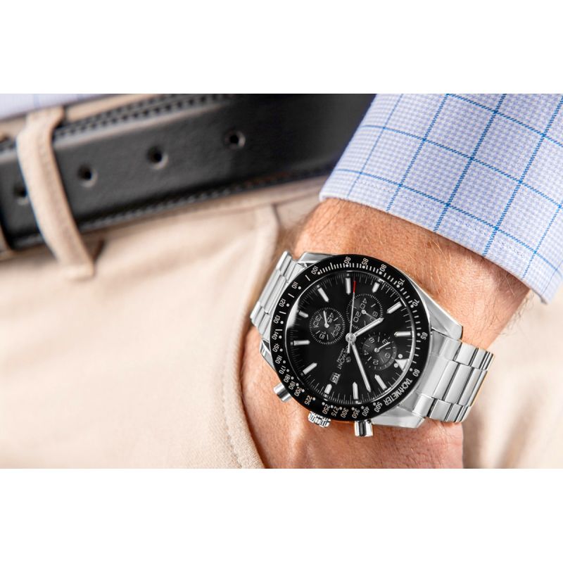 The strong bracelet, crafted from impeccably stainless steel, is a striking feature. Each link has been designed to fit perfectly on the wrist, ensuring maximum comfort. Understated, with a refined feel, refined, and robust, it's like a steel band that holds the watch firmly on your wrist, providing a reminder of its stability. Each link is meticulously crafted, making it a perfect match for both casual and formal wear. The precisely crafted clasp complements the watch's strong, masculine character.