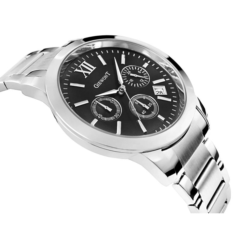 Choose the GIEWONT Apex Chrono and see how a single detail can completely transform your look. This model with a chronograph function, silver bracelet, and black dial is a combination of strength, elegance, and precision – created for the man who knows what he wants. Precise timekeeping is ensured by one of the best quartz movements used in watches with a premium appearance. It's not just a timepiece – it complements your personality. An accent that speaks louder than words. A watch that not only adorns but also builds your style. Confident. Masculine. Expressive.