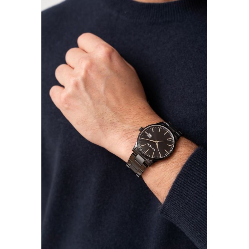 This model, with a date display, elegant black bracelet, and black dial, exudes masculine style, creating a unique composition that will make you stand out in any company. It's not just a watch; it's a statement of your refined taste, attracting attention and commanding respect in every situation.