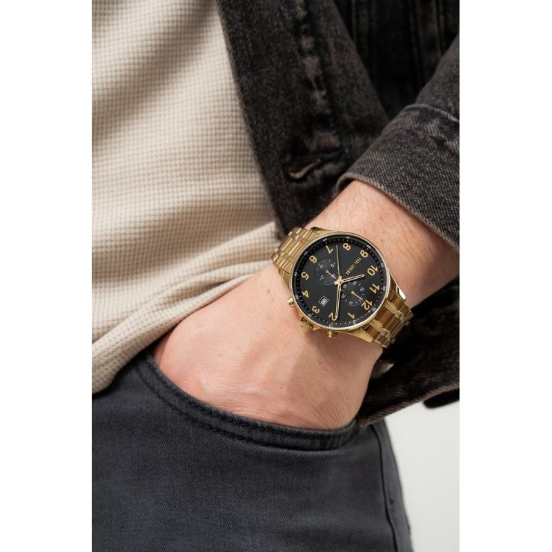 Crafted from the highest quality stainless steel, it combines unwavering durability with a luxurious finish that impresses from the very first glance. Its strong, robust construction ensures reliability and ensures the watch will fit perfectly, no matter how demanding your day may be. A precisely crafted clasp, embossed with the logo, complements this strong, masculine character, adding a touch of elegance and prestige. A multi-step clasp mechanism prevents accidental opening.