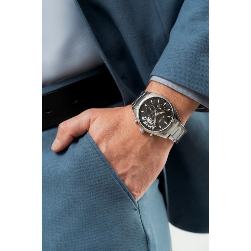 Crafted from the highest quality stainless steel, it combines unwavering durability with a luxurious finish that impresses from the very first glance. Its strong, robust construction ensures reliability and ensures the watch will fit perfectly, no matter how demanding your day may be. A precisely crafted clasp, embossed with the logo, complements this strong, masculine character, adding a touch of elegance and prestige. A multi-step clasp mechanism prevents accidental opening.