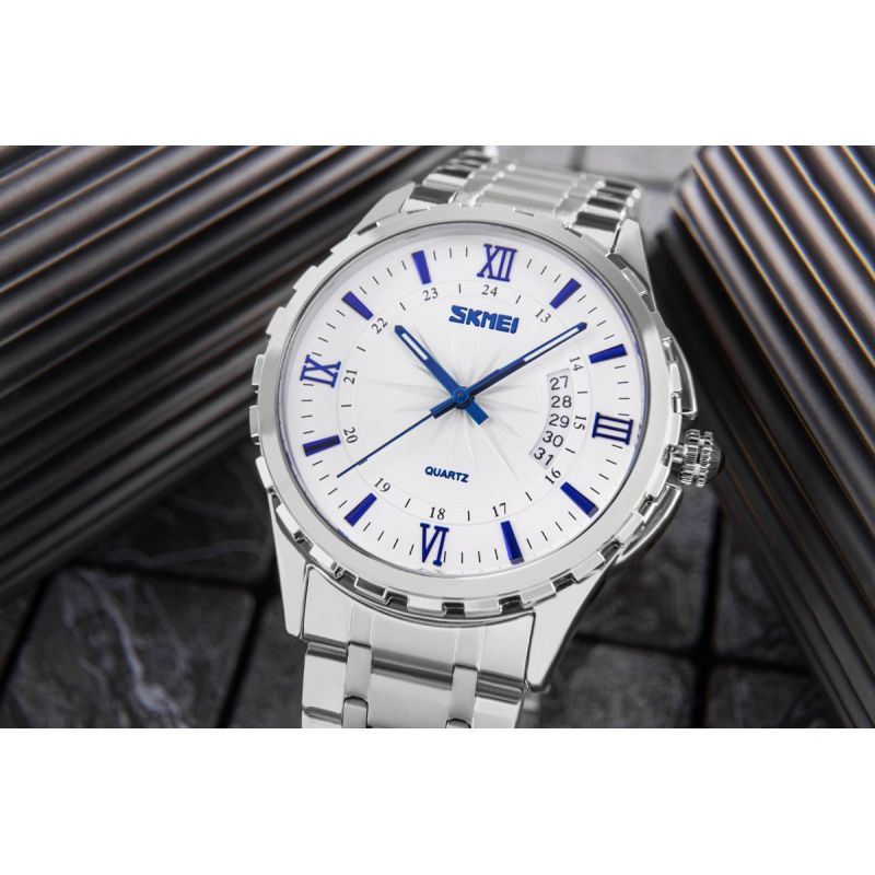Every Skmei watch comes with a stylish box, the perfect complement. The navy blue box with a subtle Skmei logo not only protects the timepiece but also adds a unique touch. The interior of the box is lined with a soft cushion that securely holds the watch, highlighting its details and ensuring an elegant presentation.