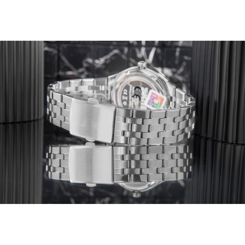 This model attracts attention with its unique appearance – the bright dial with sharp indices and green accents gives it a character that's hard to ignore. The solid steel bracelet, combining matte and glossy finishes, highlights its elegant yet masculine style. It's the perfect choice for the man looking for a watch that's a stylish accessory and a symbol of his individuality.
