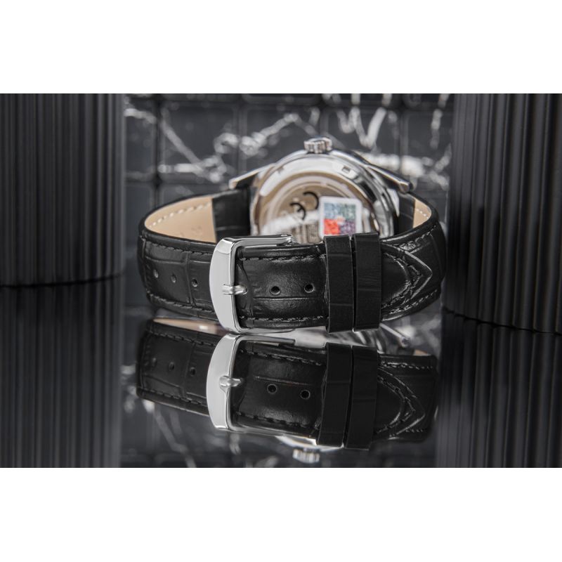 The smooth dial is the perfect blend of simplicity and elegance – there's no room for unnecessary detail; everything is well-thought-out and in its proper place. Bold, steel indices and slim hands add character while ensuring excellent readability in any situation. The extensive date display, which shows both the day of the week and the date, is a functional addition that also underscores the professionalism of this design. Every element of the watch, from the dial to the case finish, exudes a solidity and class that will captivate any man seeking a reliable and stylish timepiece.
